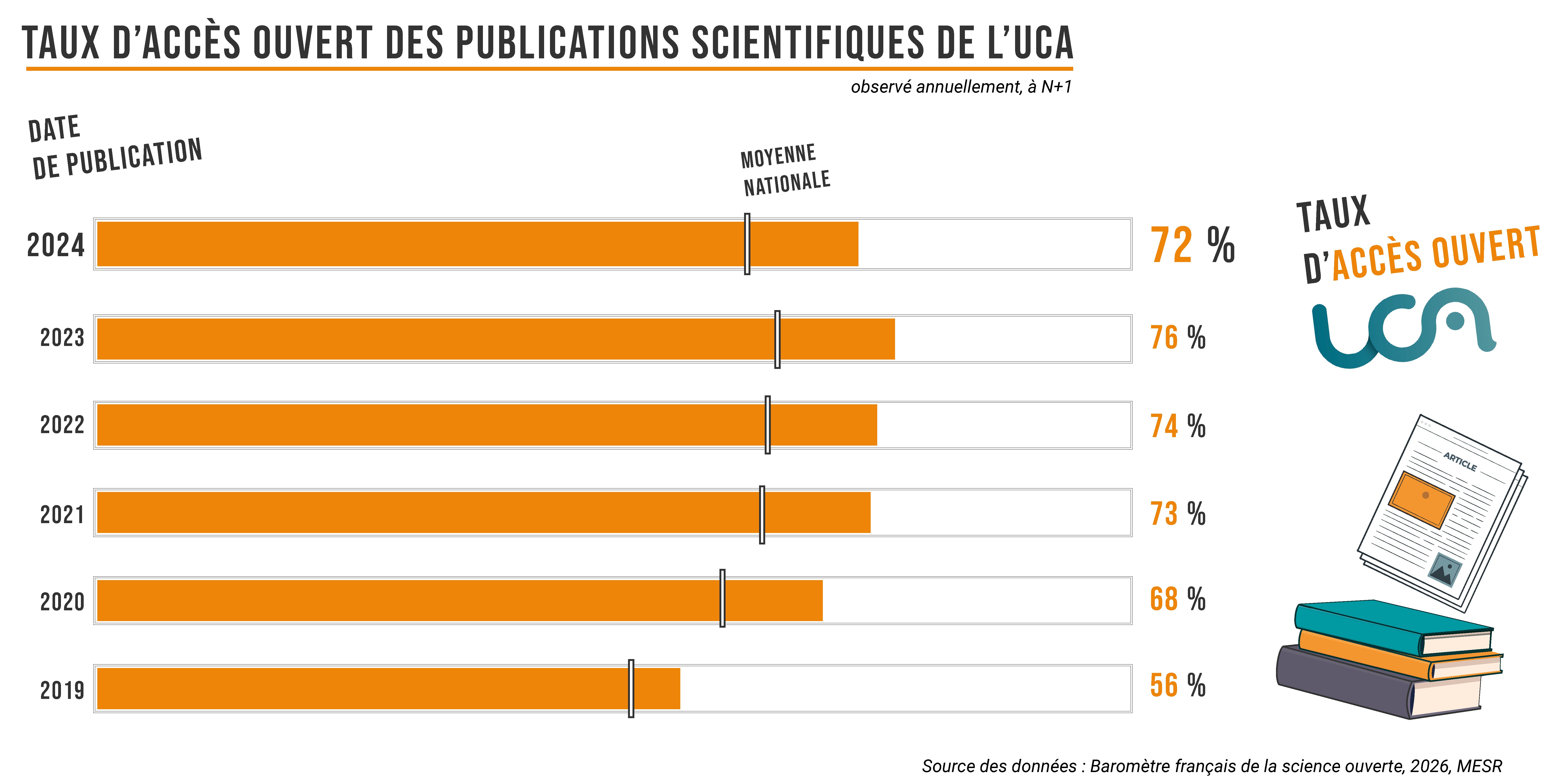 Du côté de l'UCA, 72% des publications parues en 2024 sont en accès ouvert :